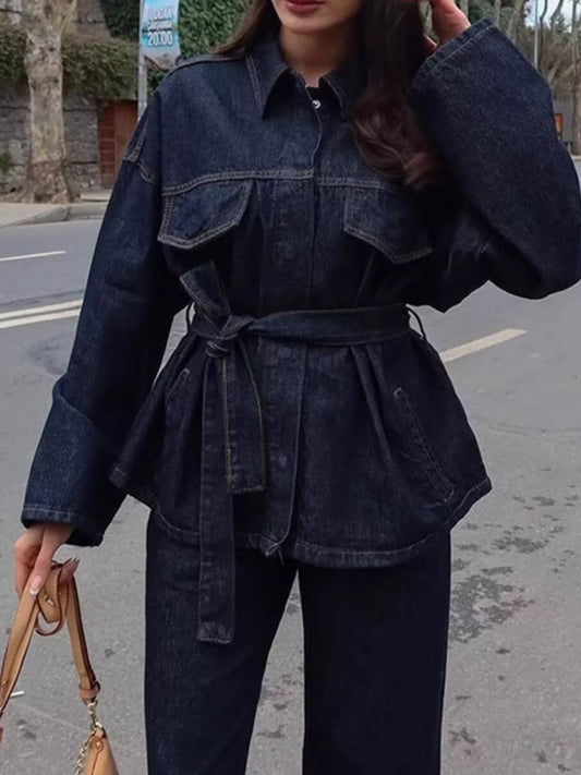 Button Up Long Sleeve Denim Set