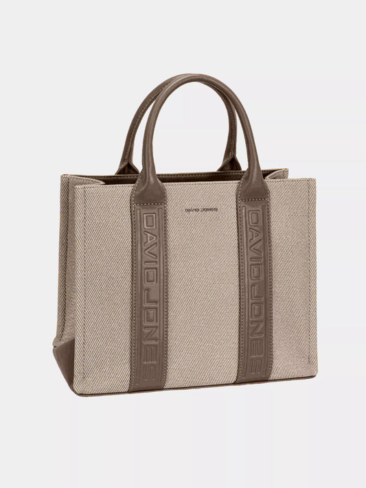 Canvas Tote Handbag with Contrast Leather Handles