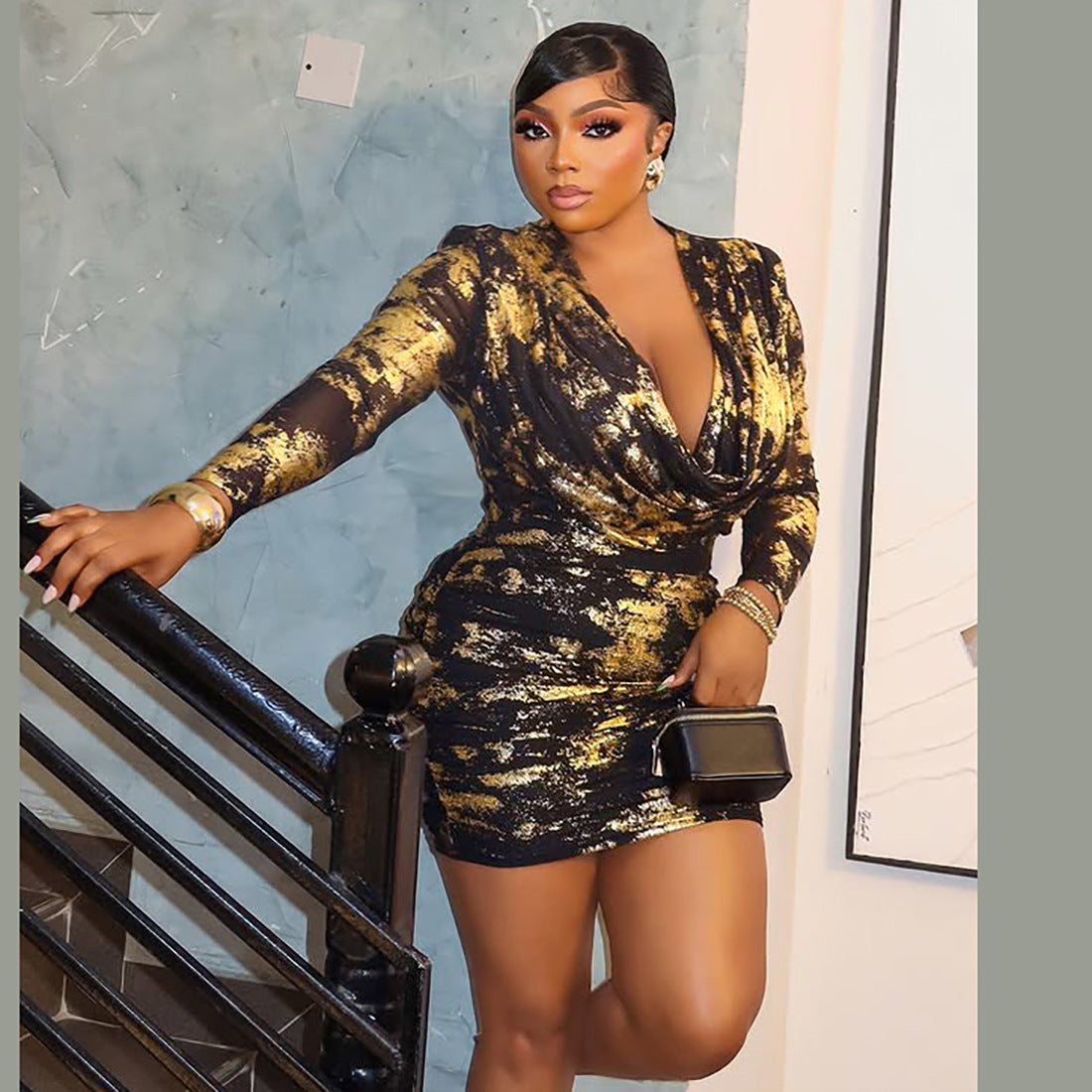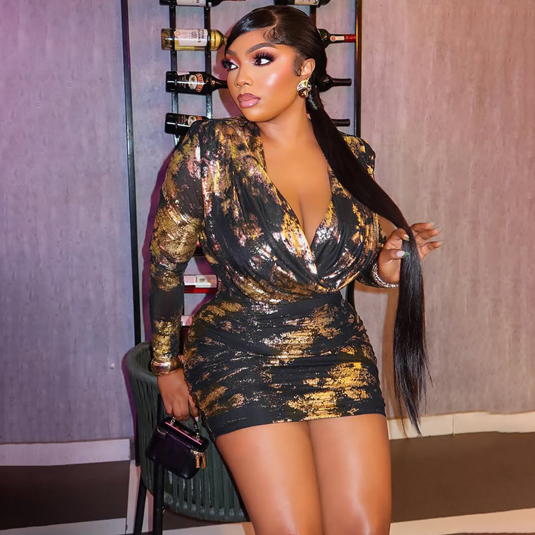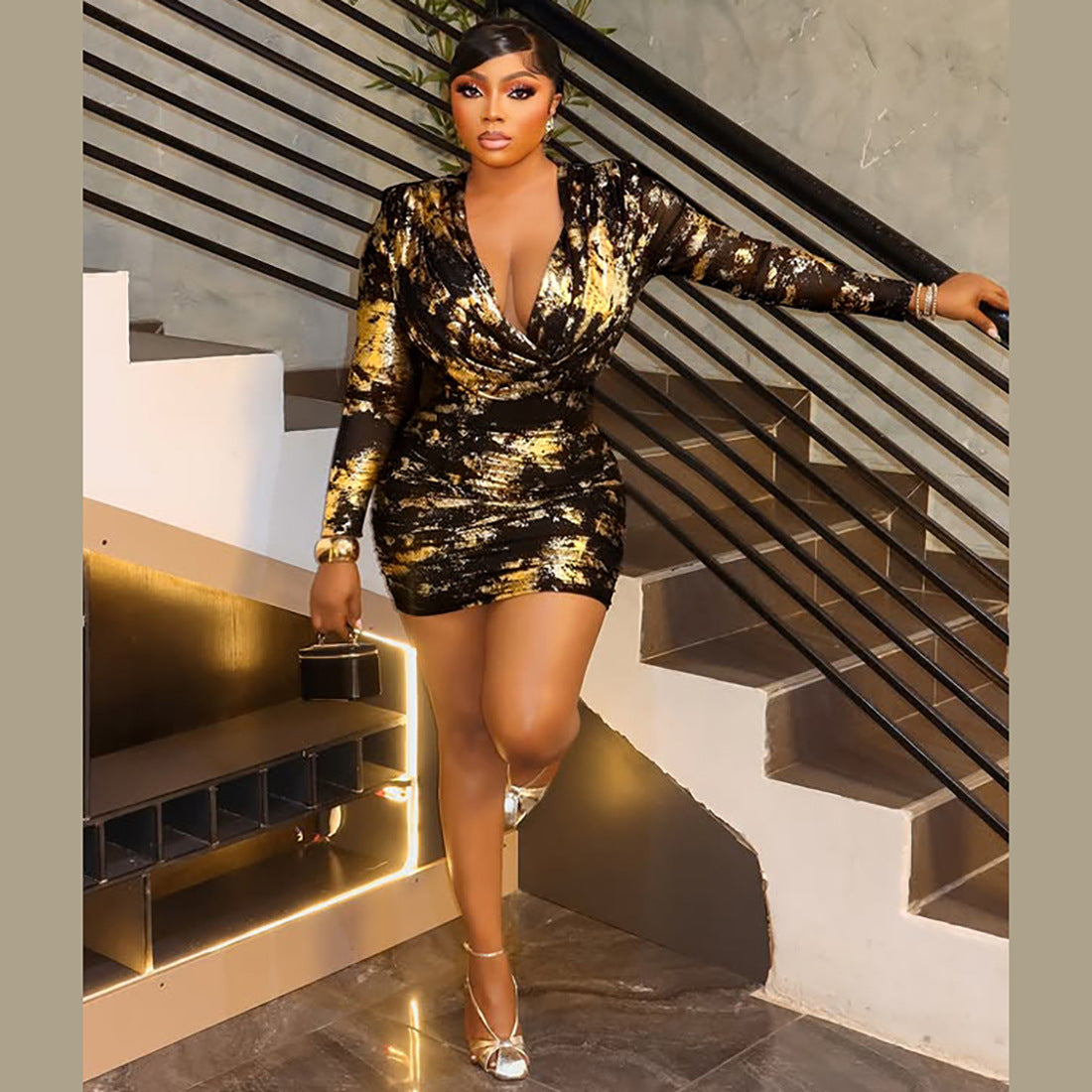Embrace elegance with this low-cut dress featuring a swinging neckline crafted from smooth ice silk. Its tight-fitting silhouette hugs your hips perfectly, creating a stunning and flattering look for any occasion.