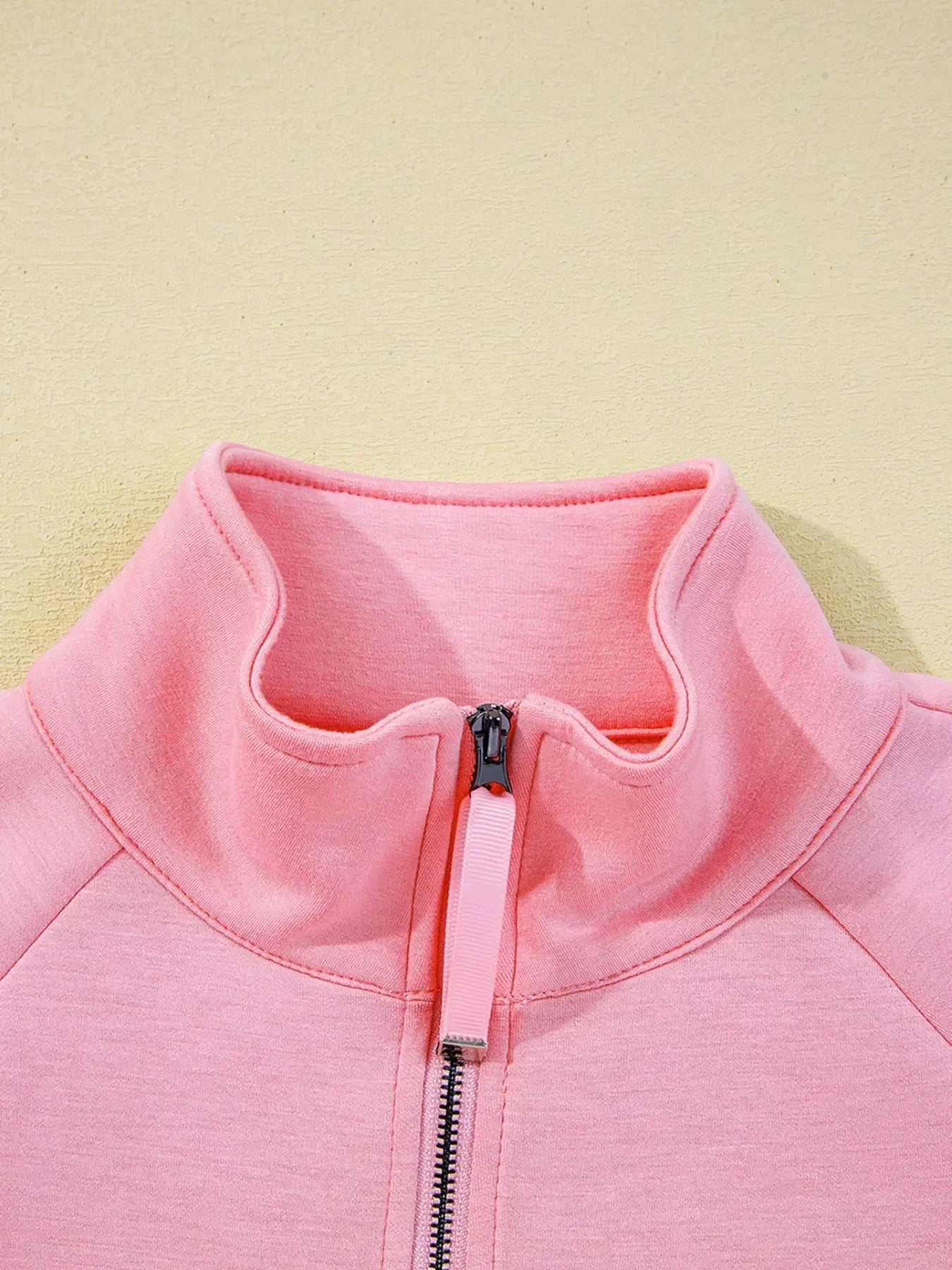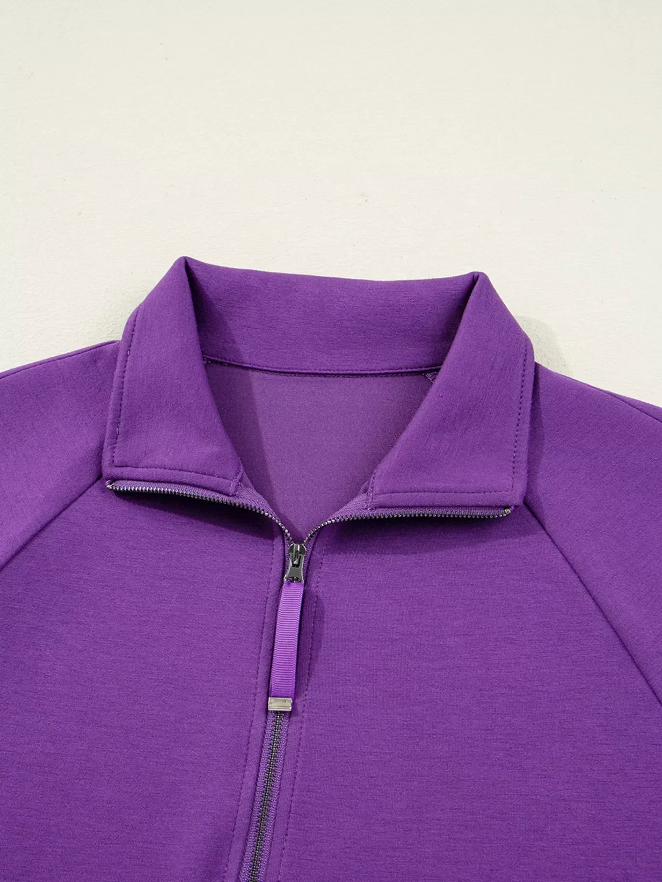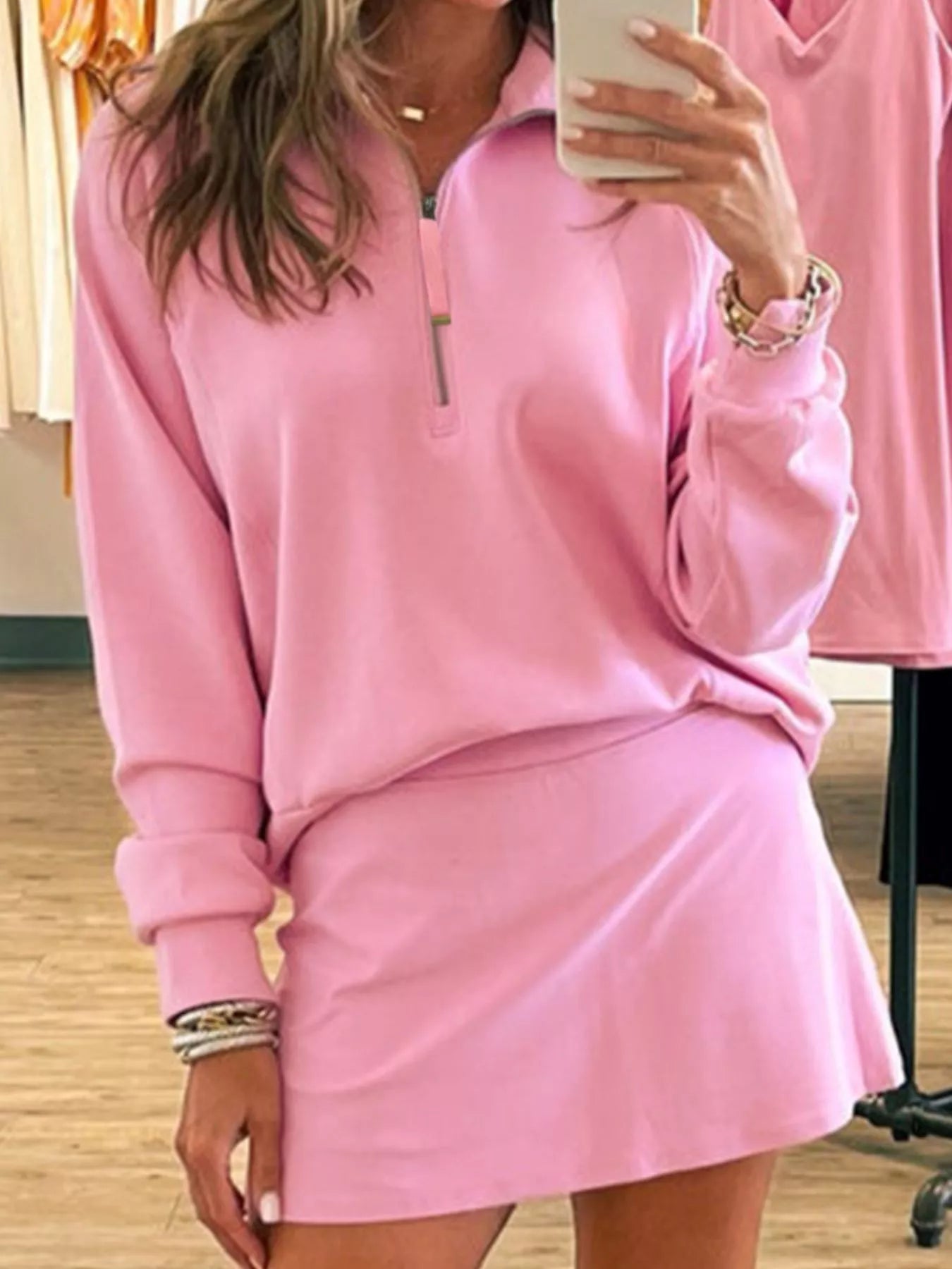 Elevate your style with this chic two-piece set featuring a half-zip long sleeve top paired with a trendy mini skirt for a effortlessly fashionable look.